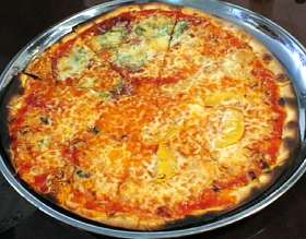昼間のメニューは少ないのですが、ピザ大好きな人にとっては、これはとっても美味しいお店です(^^) 写真のピザは4種類をミックスしたもので、1枚のピザ生地に、いろいろな種類のものを トッピングして焼いてもらいました。 ピーチの入ったピザは初めて食べましたが、とってもジュ〜シィ〜。(^^) この1皿だいたい2〜3人前。2人で行けばこのピザ2〜3皿で、 もうおなかいっぱいになります。 しかも値段はワンドリンクつきで一人780円(税込み)なんだから、とっても格安!。 ピザをおかわりをする時は、お腹の具合に合わせて大きさを変えてもらうこともできます。 | ||||||||||
