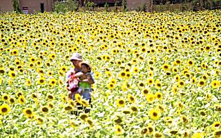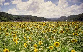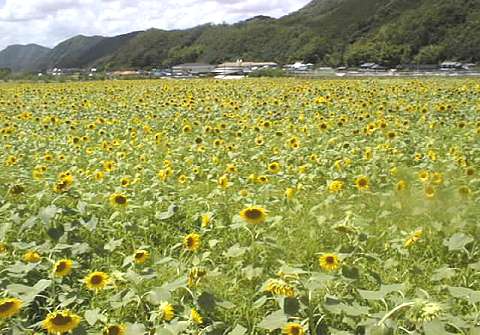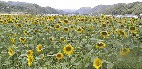 一面に拡がるひまわり畑は、今では町おこしに一役買っています。
